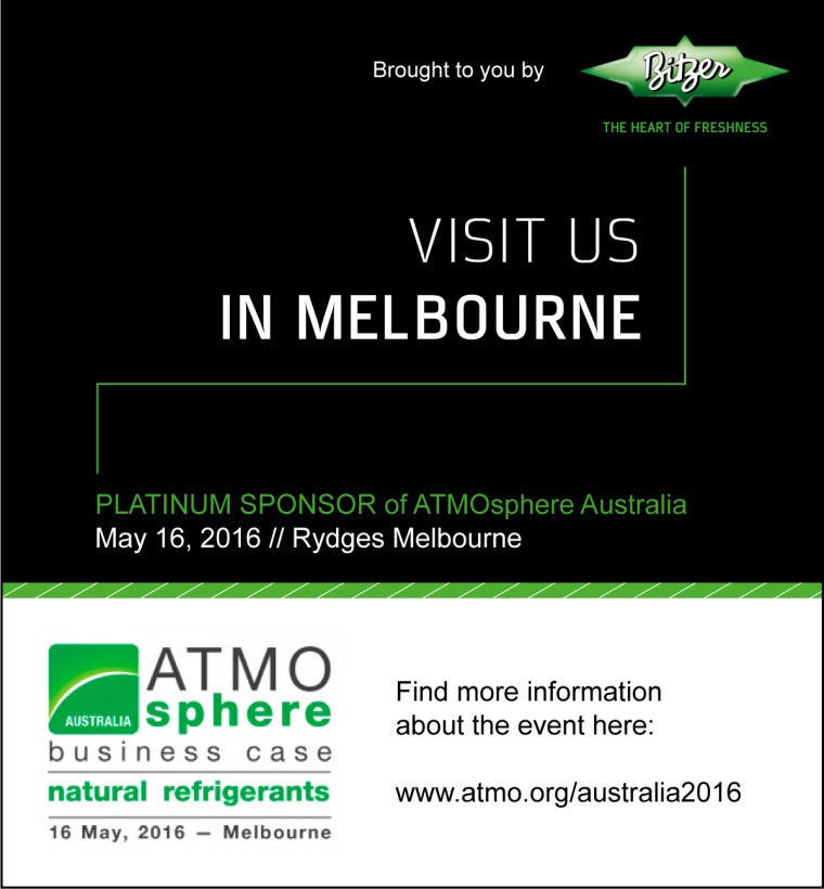 On May 16, 2016, BITZER will have another good platform to talk about the opportunities and challenges linked to the use of natural refrigerants: As a platinum sponsor, the specialist in refrigeration compressors will attend the premiere ATMOsphere Australia, held in Melbourne.