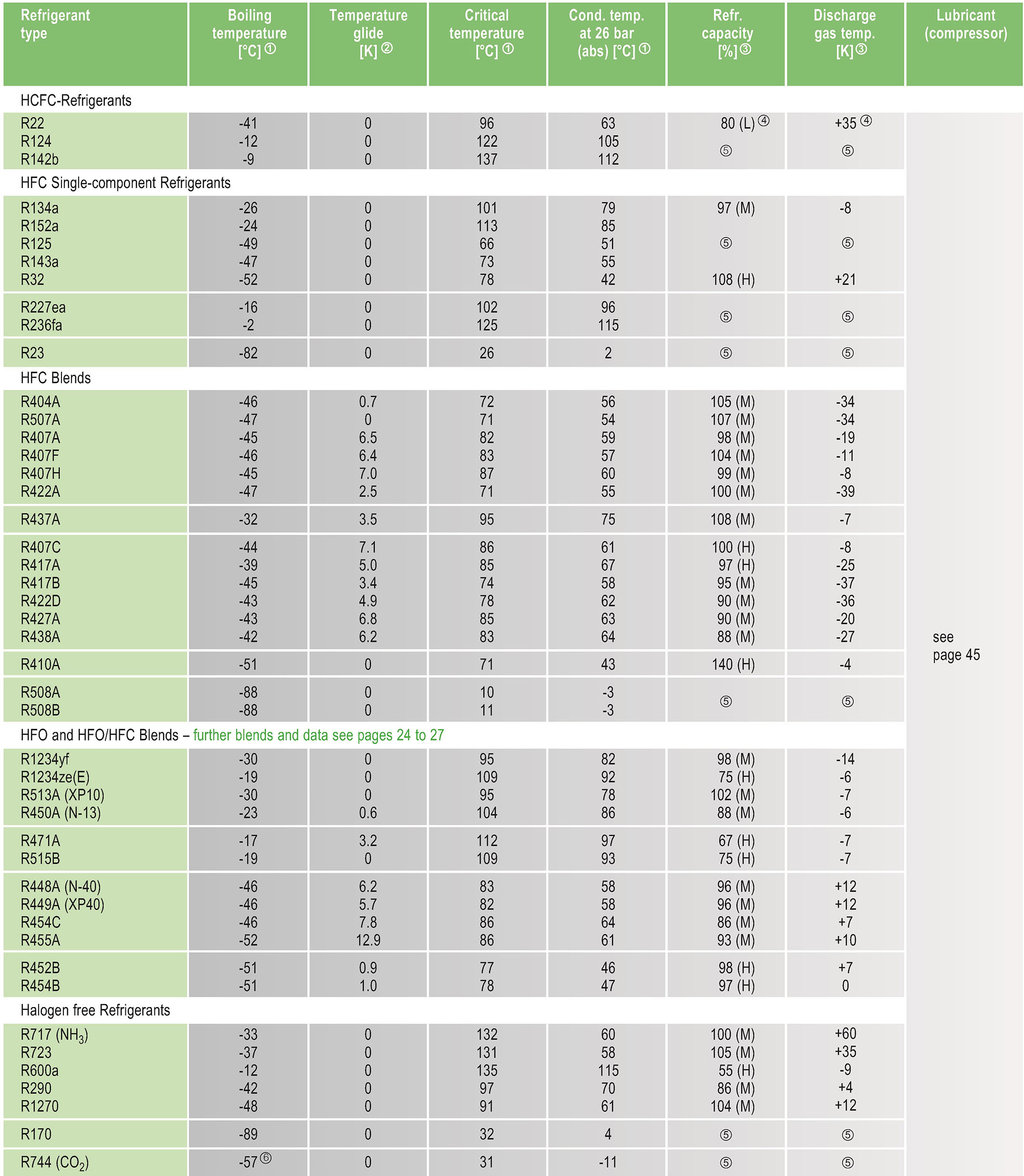 Refrigerant data