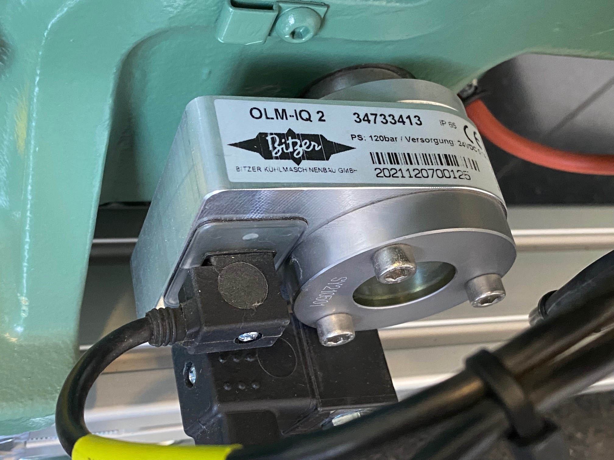 With the OLM-IQ, Bitzer offers its own electronic oil level controller. It is mounted to the sight glass connection by means of an adaptor. The OLM-IQ actuator-sensor unit can be purchased as an accessory to the CM-RC compressor module (mounted ex factory or for retrofitting) and enables a stable oil level through continuous oil level measurement, dosing of the oil return and adaptation to the oil supply pressure. The logic including communication to the higher-level system controller and data log is fully integrated into the CM-RC (CM-RC-01 or CM-RC-02 with extension boards CM-IO-A or CM-IO-B).