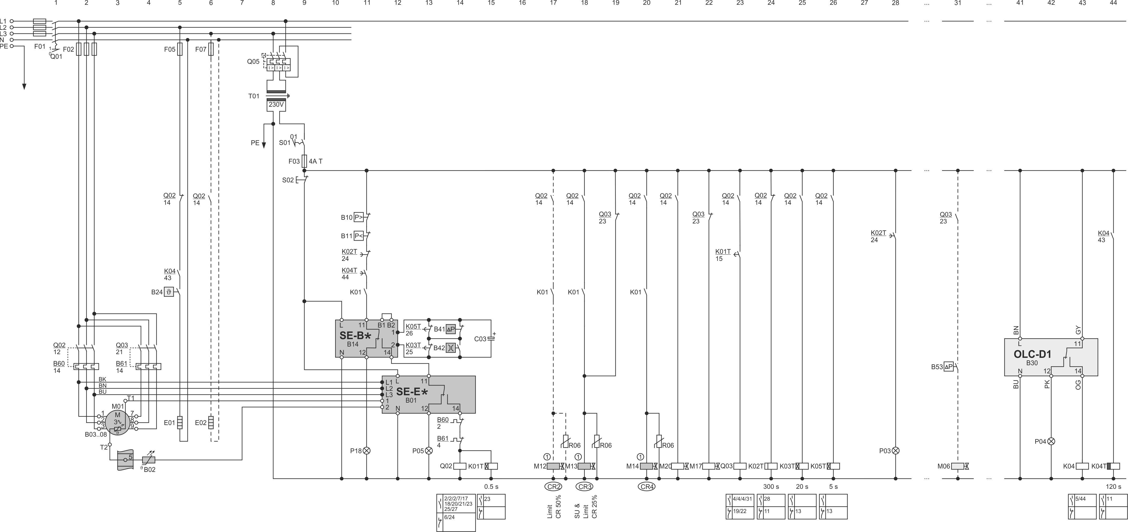 T01 | Control transformer (example for 230 V, required according to EN60204-1) |