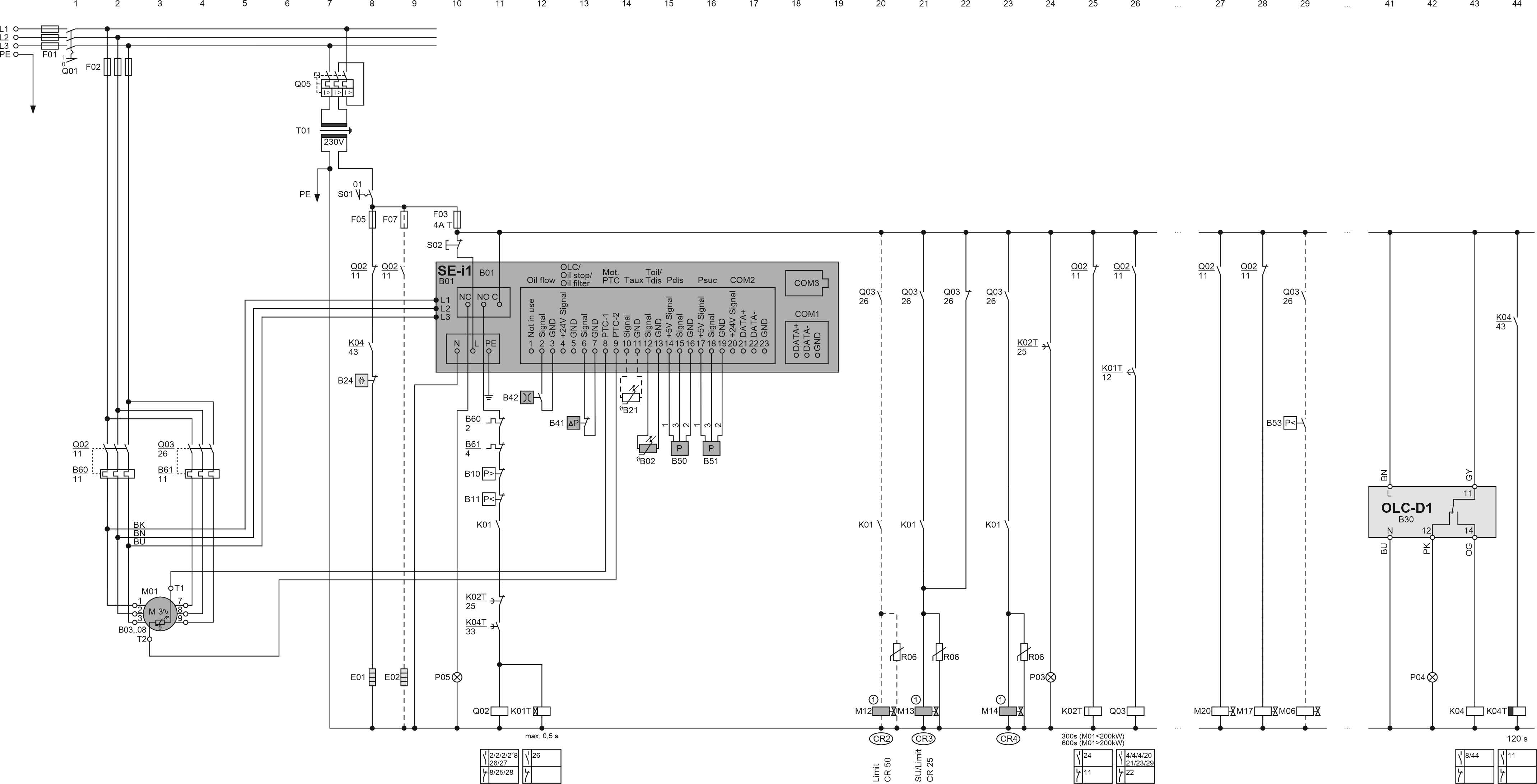 T01 | Control transformer (example for 230 V, required according to EN60204-1) |