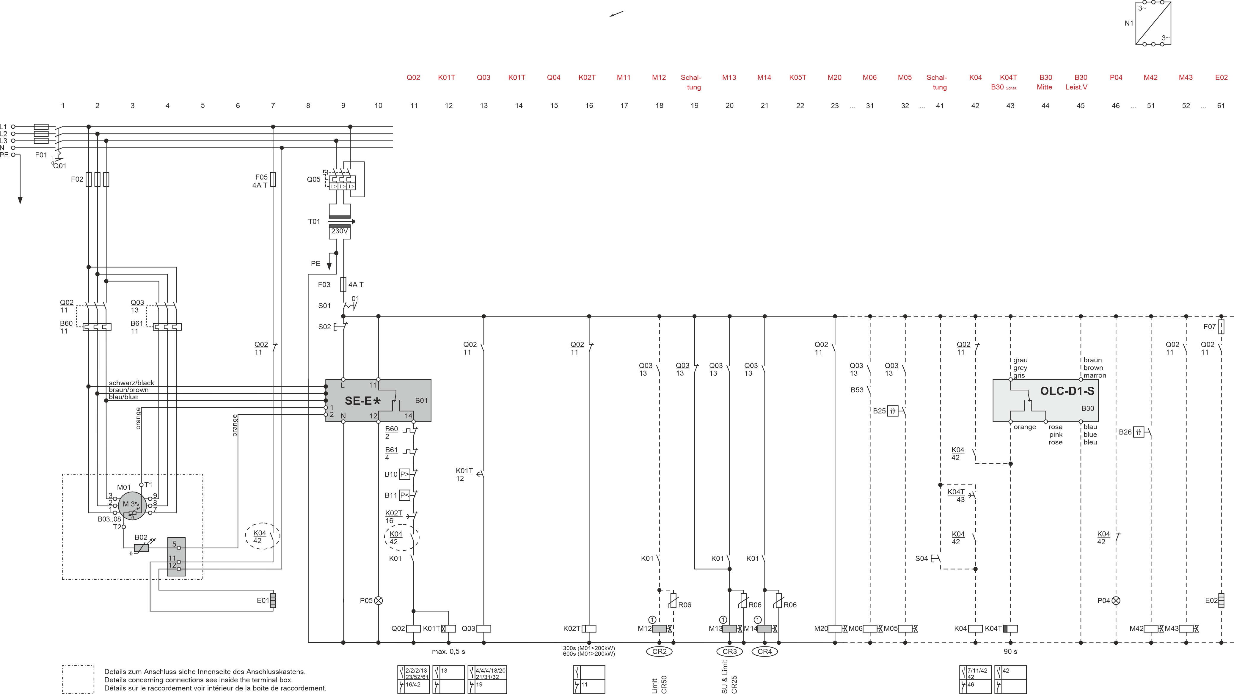T01 | Control transformer (example for 230 V, required according to EN60204-1) |