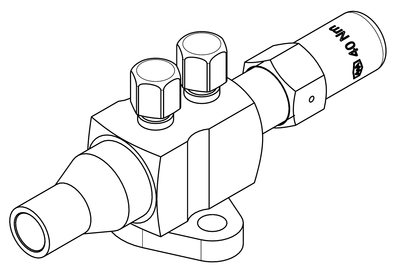 This is an example. The 1 .. 2 maintenance connections can be located at the top or on the side, or they can be omitted. The connection to the compressor, pressure vessel etc. (bottom) can be a flange or Rotalock connection.