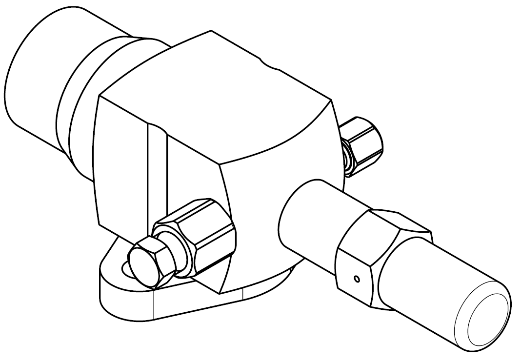 This is an example. The 1 .. 2 maintenance connections can be located at the top or on the side, or they can be omitted. The connection to the compressor, pressure vessel etc. (bottom) can be a flange or Rotalock connection.