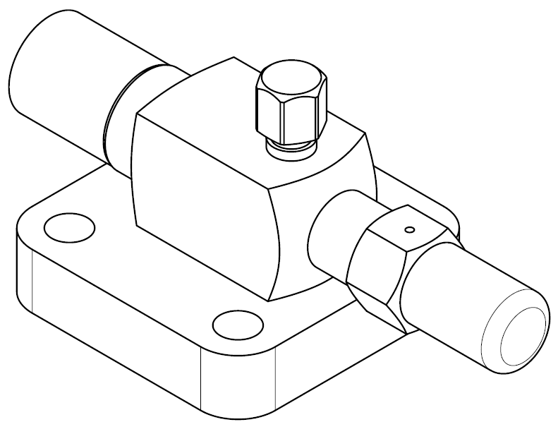 This is an example. The 1 .. 2 maintenance connections can be located at the top or on the side, or they can be omitted. The connection to the compressor, pressure vessel etc. (bottom) can be a flange or Rotalock connection.