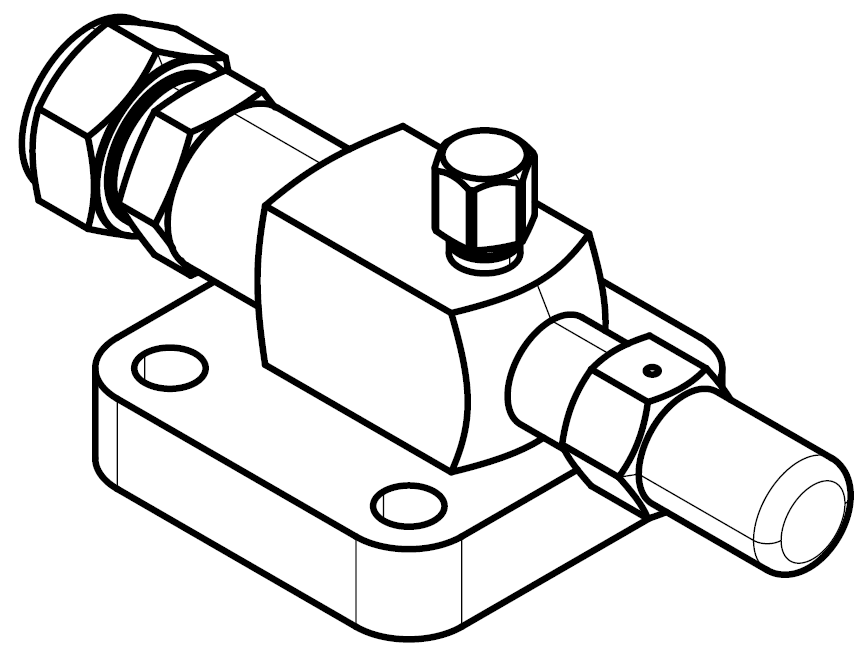 Examplary sketch of a shut-off valve with compression fitting, showing the inside diameter relevant for connection to the piping. This is an example, the valve may additionally have 1 .. 2 maintenance connections at the top or on the side. The connection to the compressor (bottom) can be a flange or Rotalock connection.