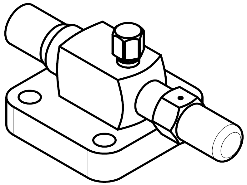 This is an example. The 1 .. 2 maintenance connections can be located at the top or on the side, or they can be omitted. The connection to the compressor, pressure vessel etc. (bottom) can be a flange or Rotalock connection.