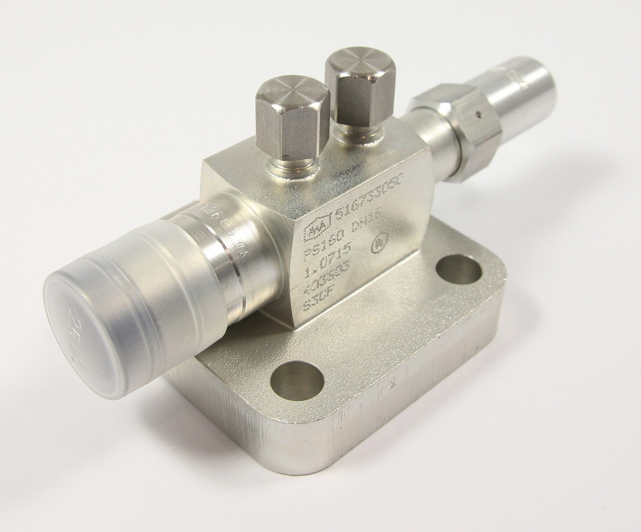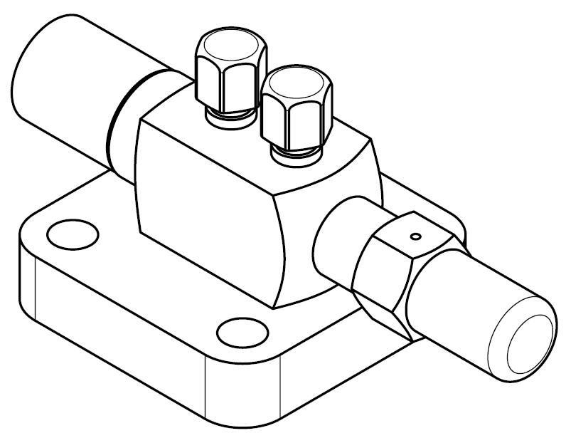 This is an example. The 1 .. 2 maintenance connections can be located at the top or on the side, or they can be omitted. The connection to the compressor, pressure vessel etc. (bottom) can be a flange or Rotalock connection.