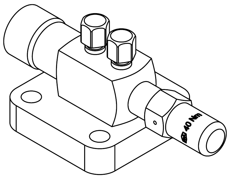 This is an example. The 1 .. 2 maintenance connections can be located at the top or on the side, or they can be omitted. The connection to the compressor, pressure vessel etc. (bottom) can be a flange or Rotalock connection.