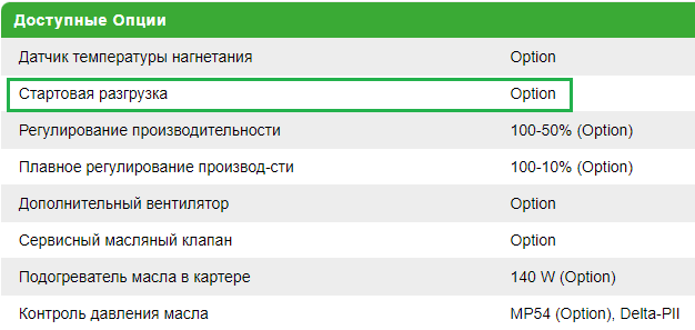 Если конкретный компрессор выбран в Bitzer Software, во вкладке «Технические данные» указано, доступна ли разгрузка при пуске: