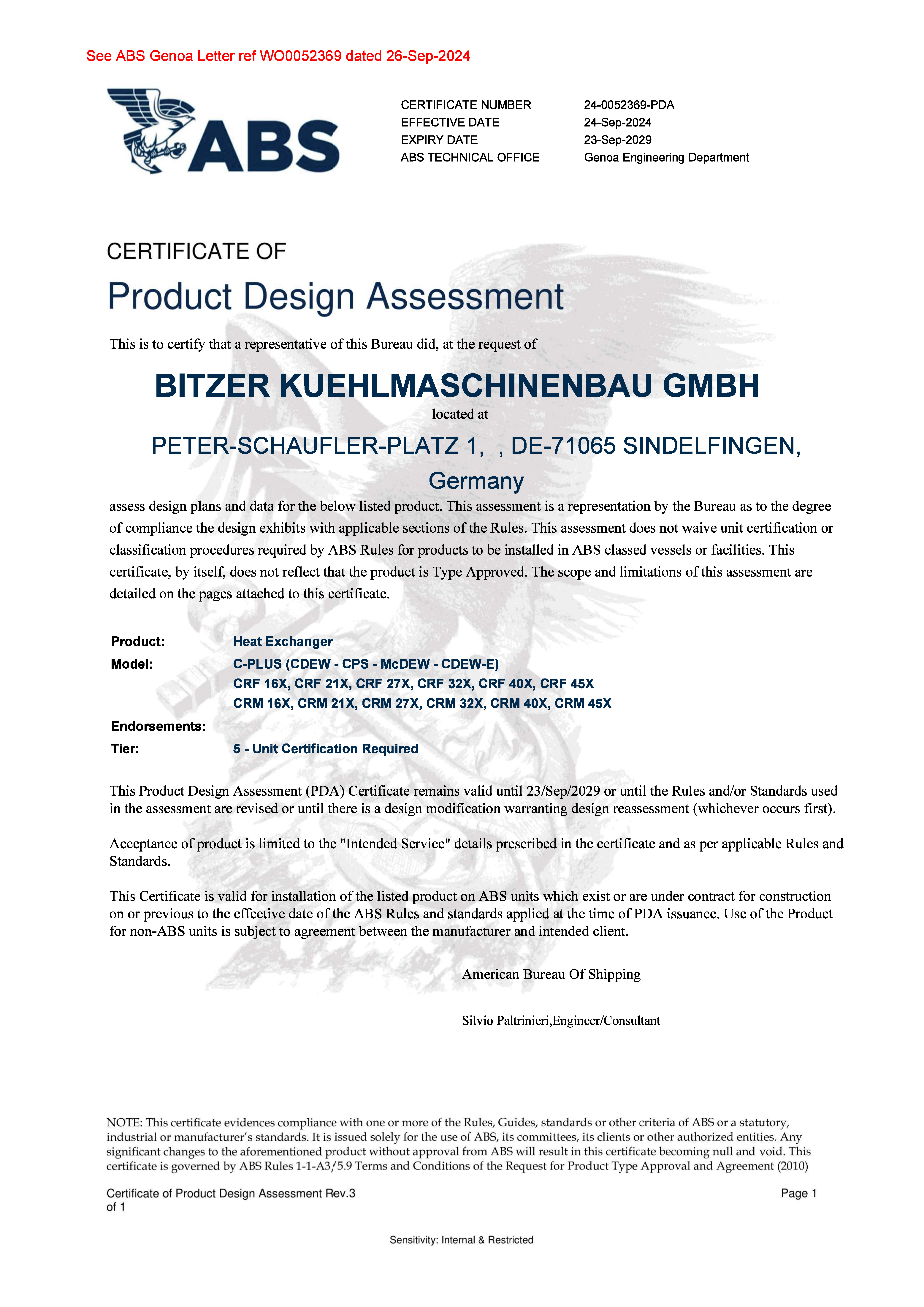 For application Cargo Refrigeration please contact BITZER before placing an order. An extended product documention is required. For supplied compressors it is not possible to deliver the required extended product documentation subsequently. Additional costs for extended product documentation will be charged.