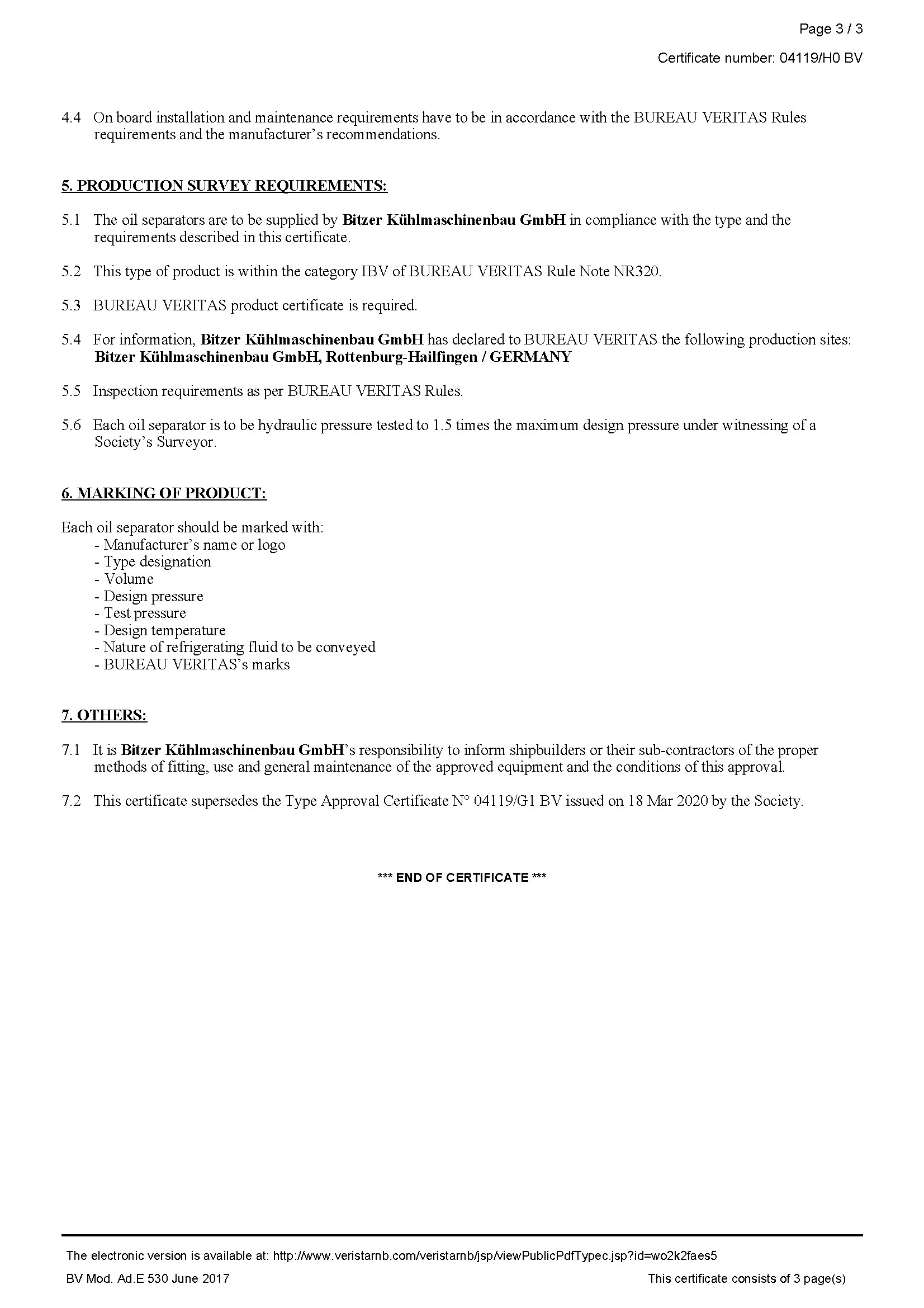 For application Cargo Refrigeration please contact BITZER before placing an order. An extended product documention is required. For supplied compressors it is not possible to deliver the required extended product documentation subsequently. Additional costs for extended product documentation will be charged.