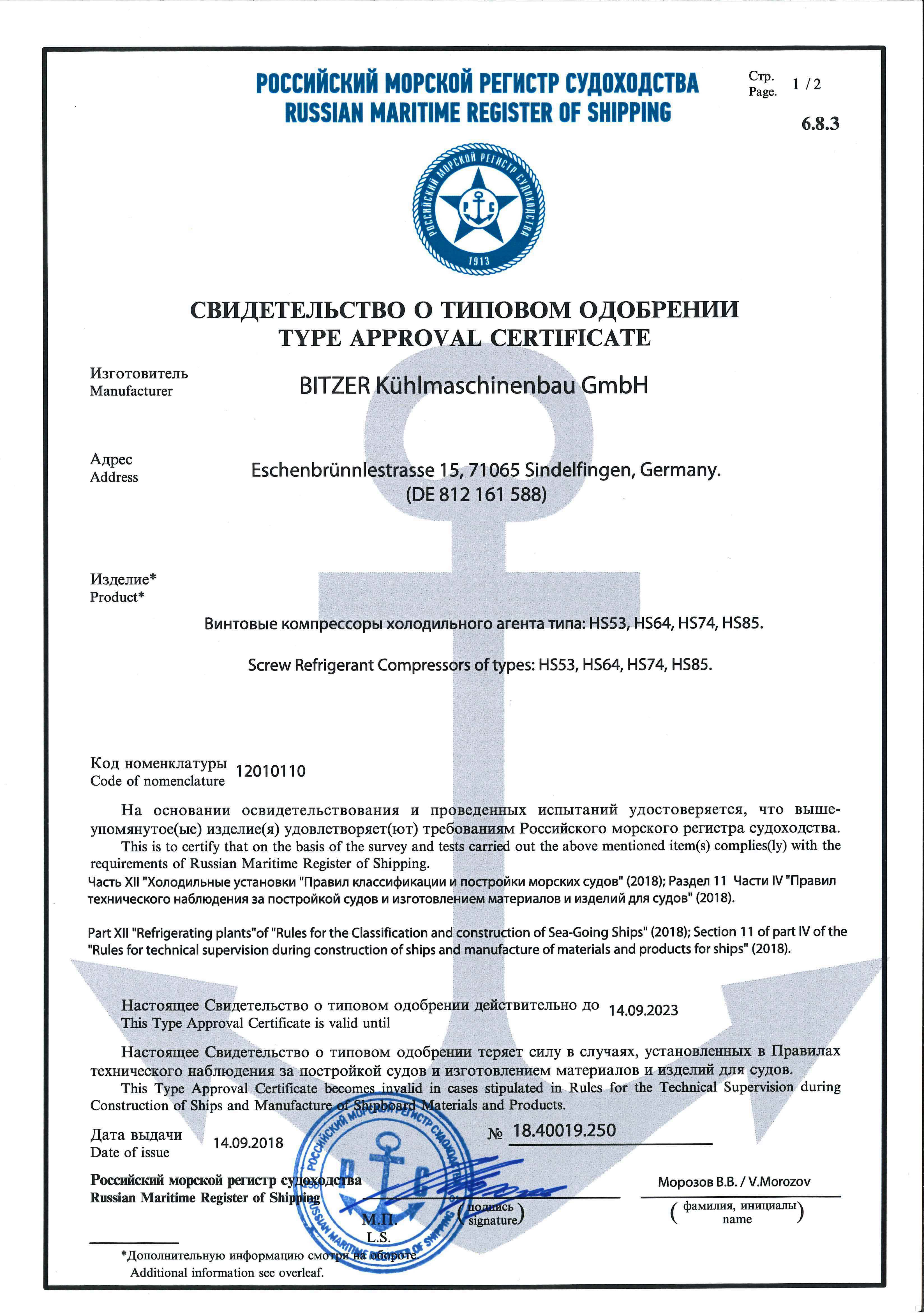 Type Approval Certificate for HS53 .. HS85