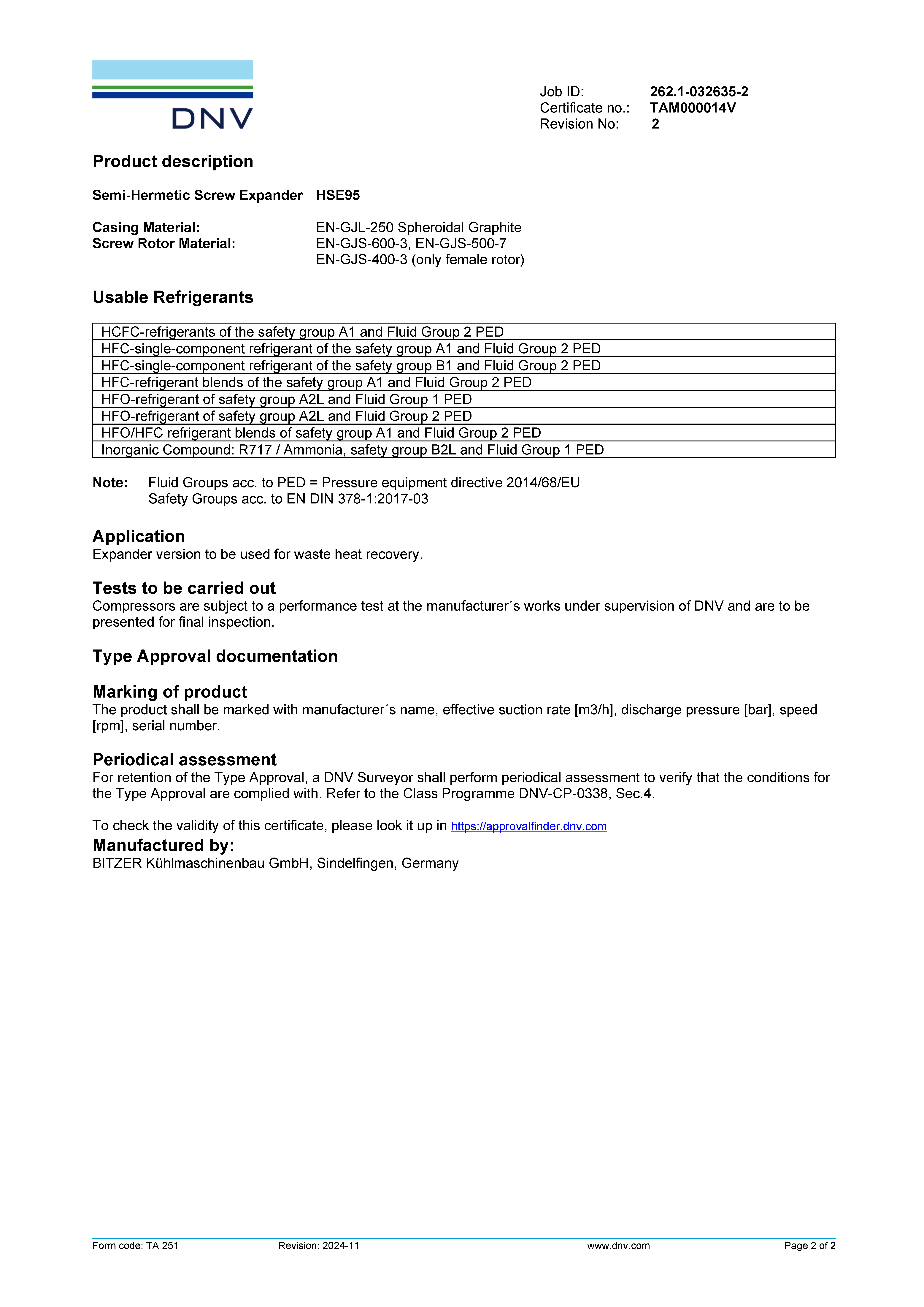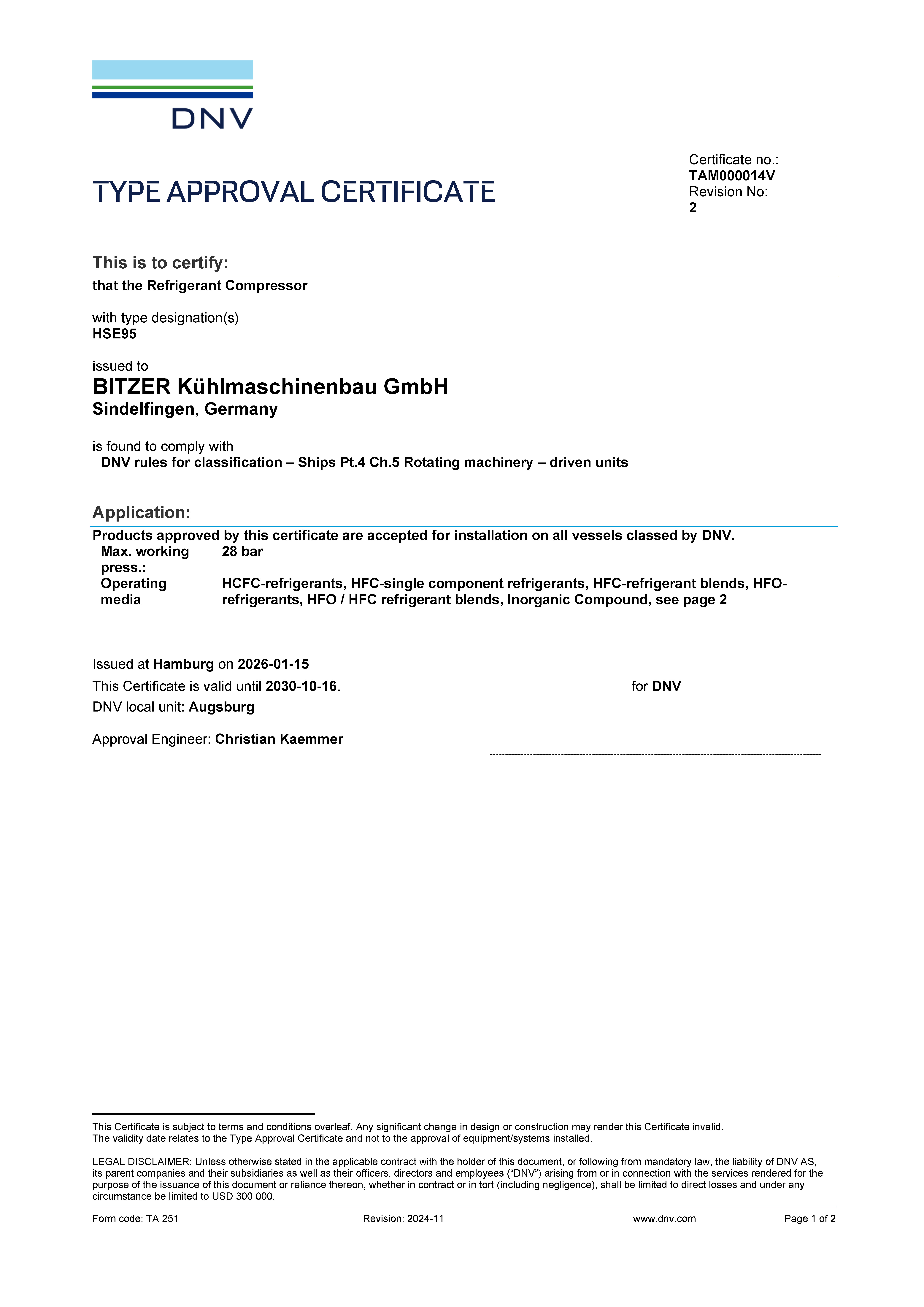 Type Approval Certificate for HS.95