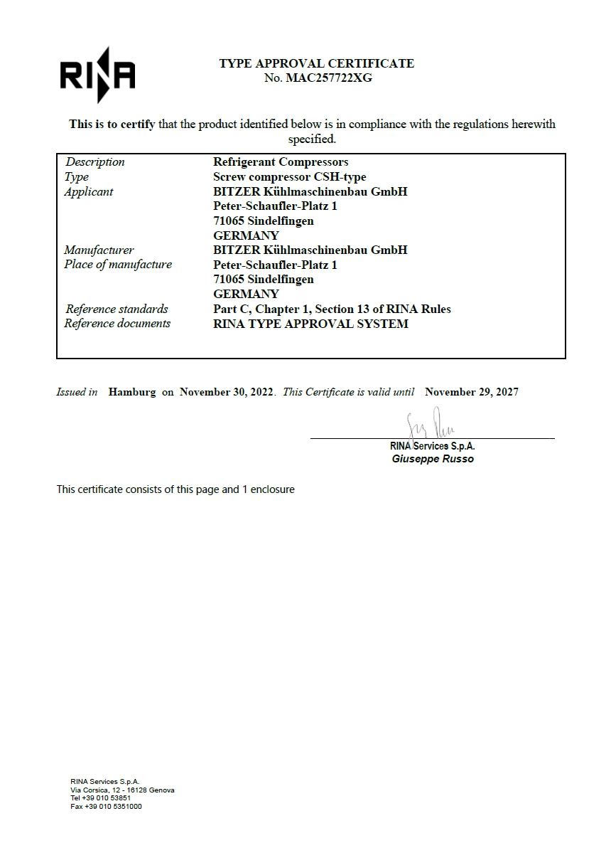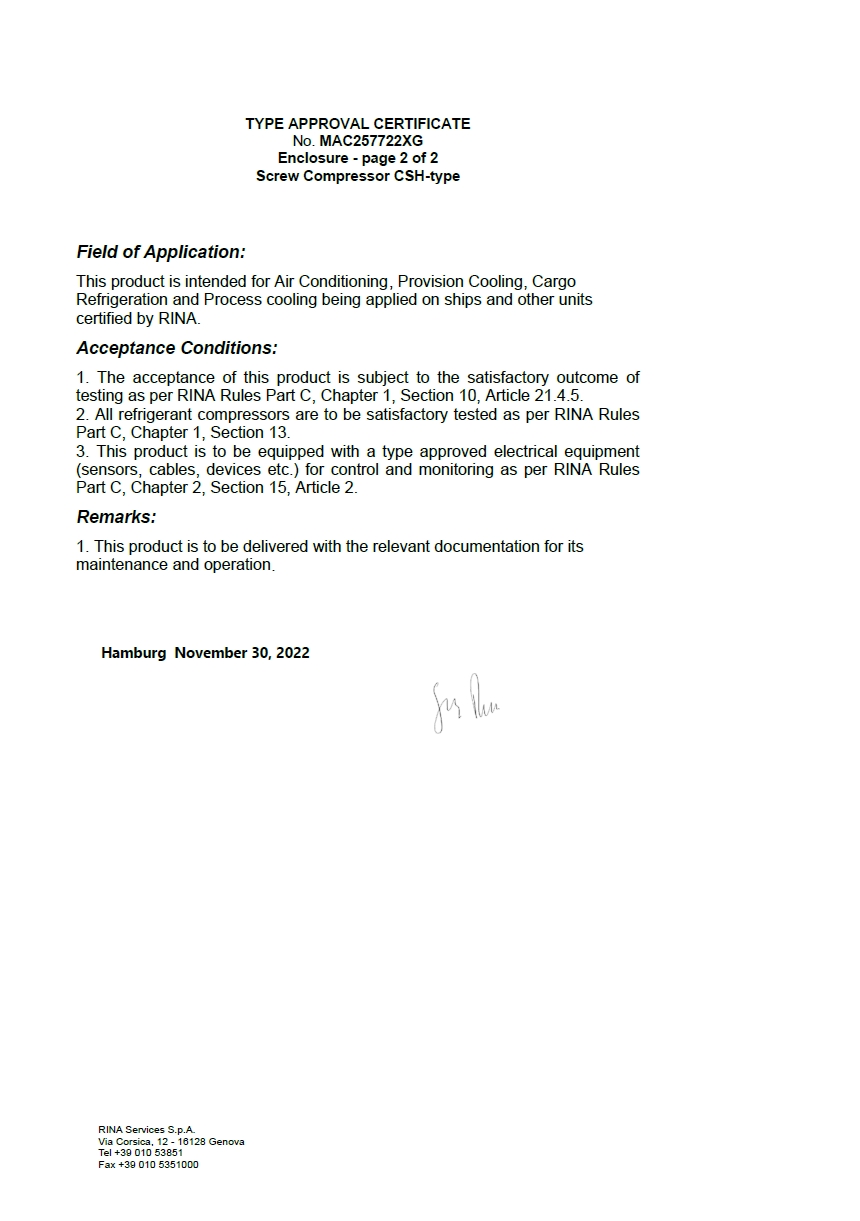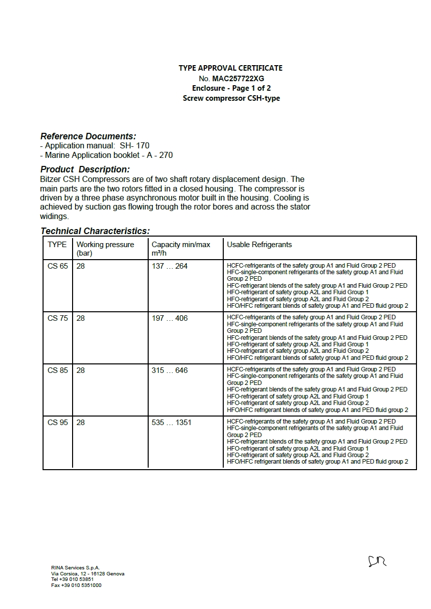 Type Approval Certificate for CS.65, CS.75, CS.85, CS.95