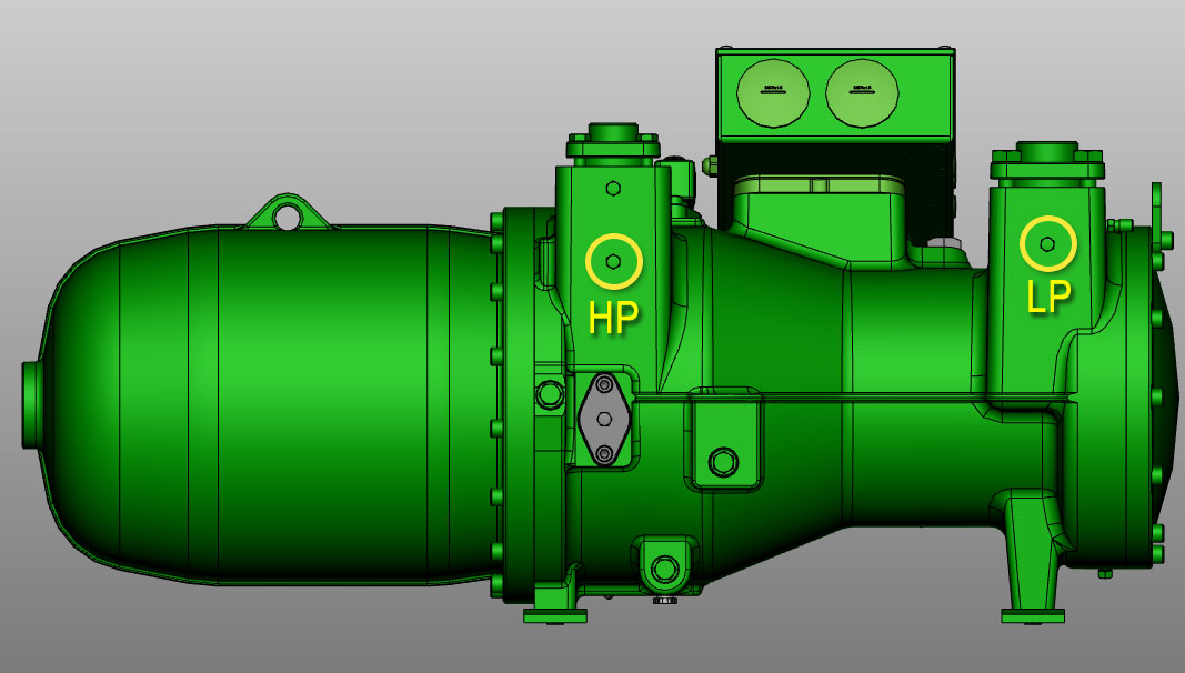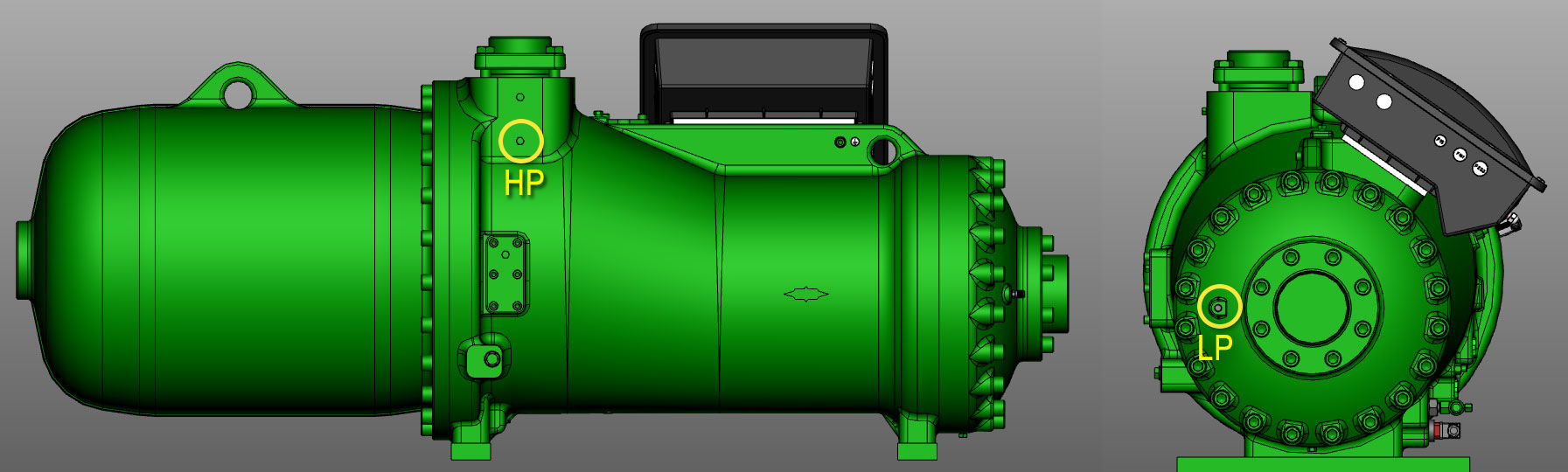 Connection positions of the high and low pressure transmitter for CS. compressors