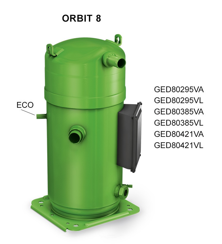 - Ein ORBIT FIT Verdichter mit Economiserbetrieb kann um eine Leistungsgröße "kleiner" gewählt werden als ein Standard ORBIT Verdichter.