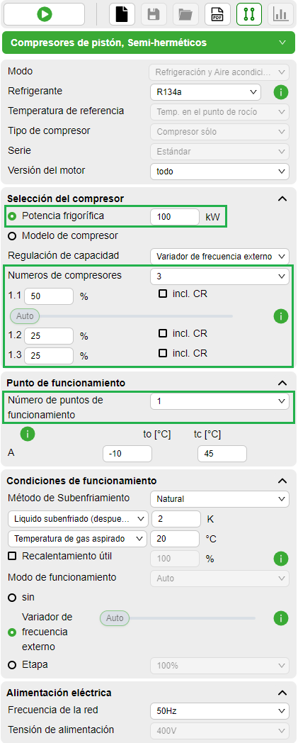 El BITZER Software facilita el diseño de baterías para compresores a pistón semiherméticos, abiertos y de 2 etapas. Este ejemplo ilustra el procedimiento:
