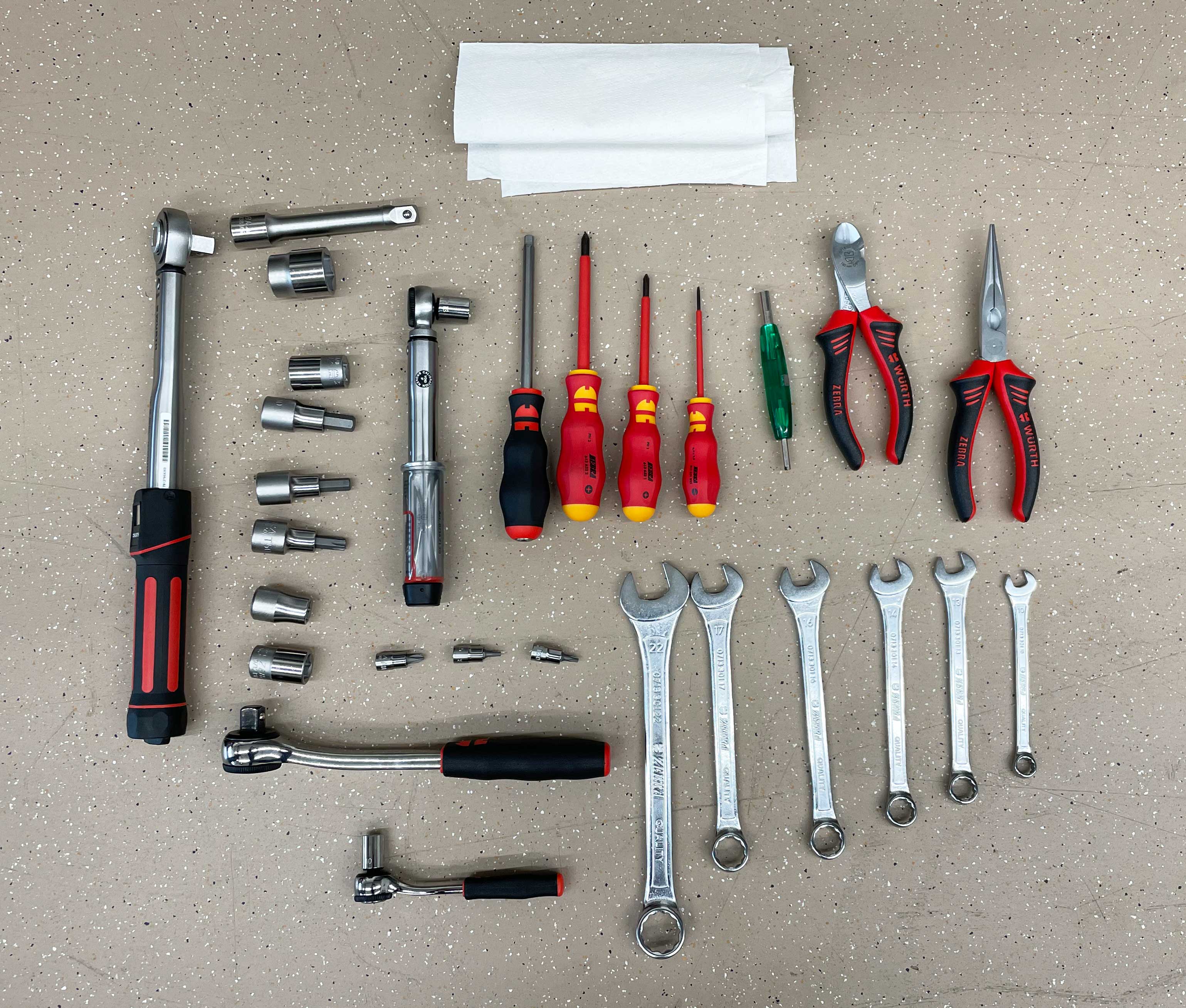 - Ratschenschlüssel mit verschiedenen Innensechskantschlüsseln