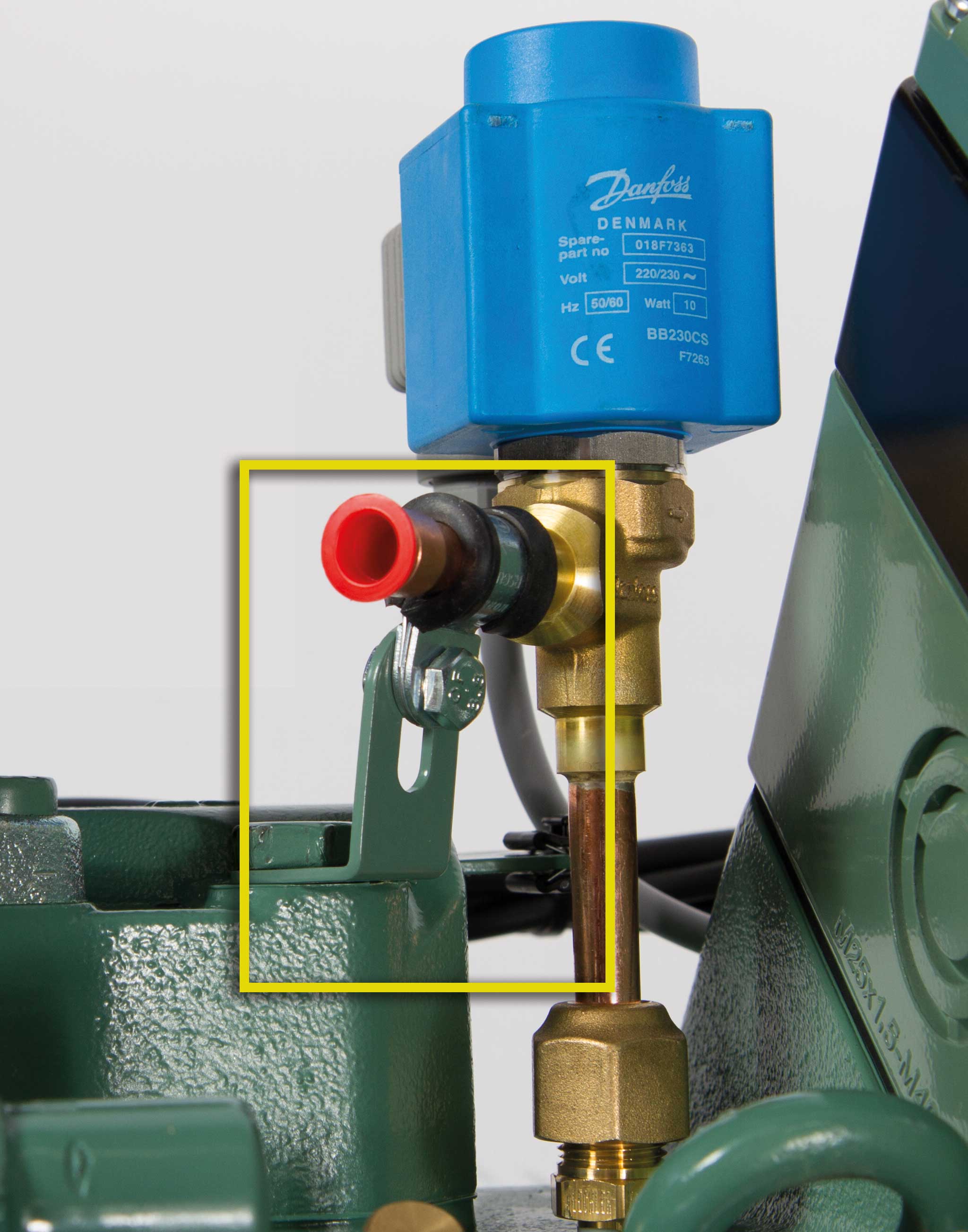 Bei der Position des Befestigungsblechs und der Rohrschelle am Zylinderkopf muss die Richtung des Rohreintritts am Ventil berücksichtigt werden.