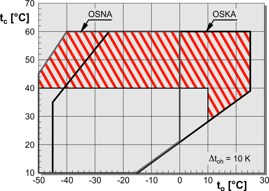 Operation in the shaded area of the application limit (tc > 40°C and/or to > 10°C) | Economiser muffler system is mandatory |