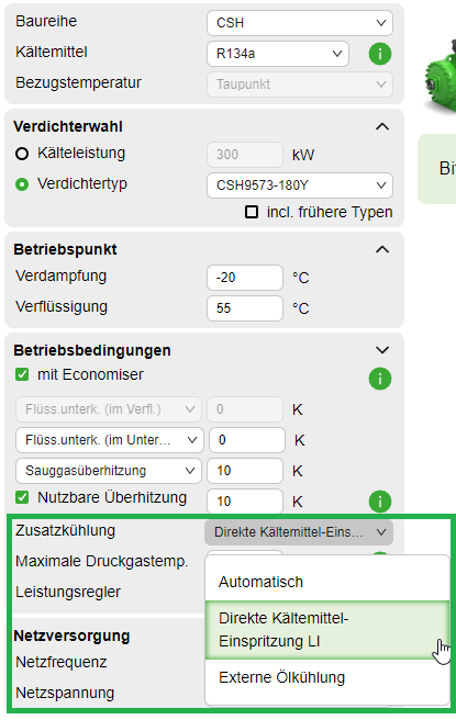 Kältemitteleinspritzung in der BITZER SOFTWARE