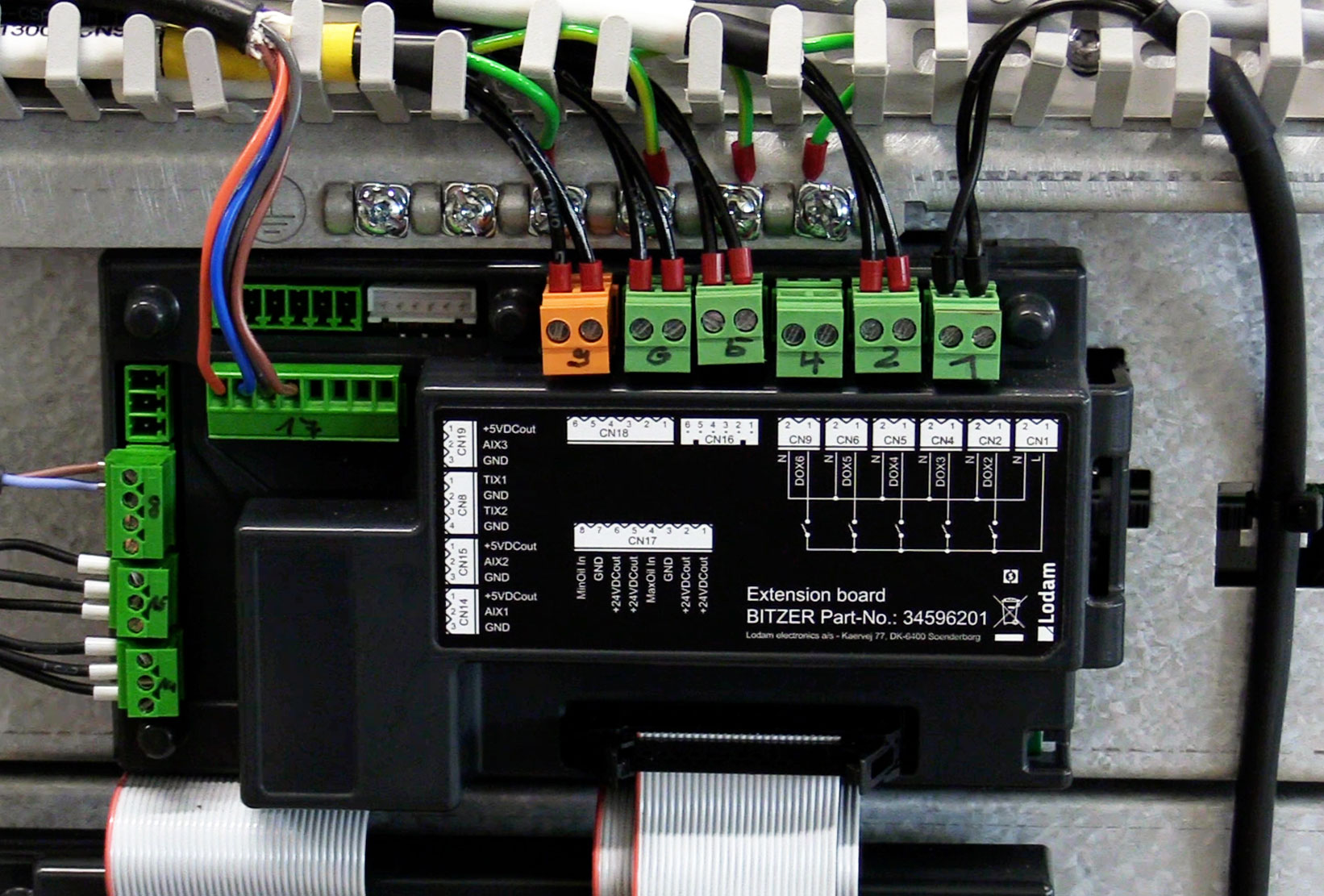 Terminal assignment at the extension board before the electronic cooling unit valve group has been mounted