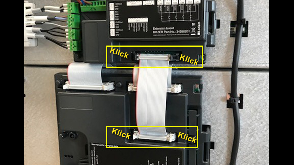 Connect control board and extension board with the grey ribbon cable and connect low pressure transmitter
