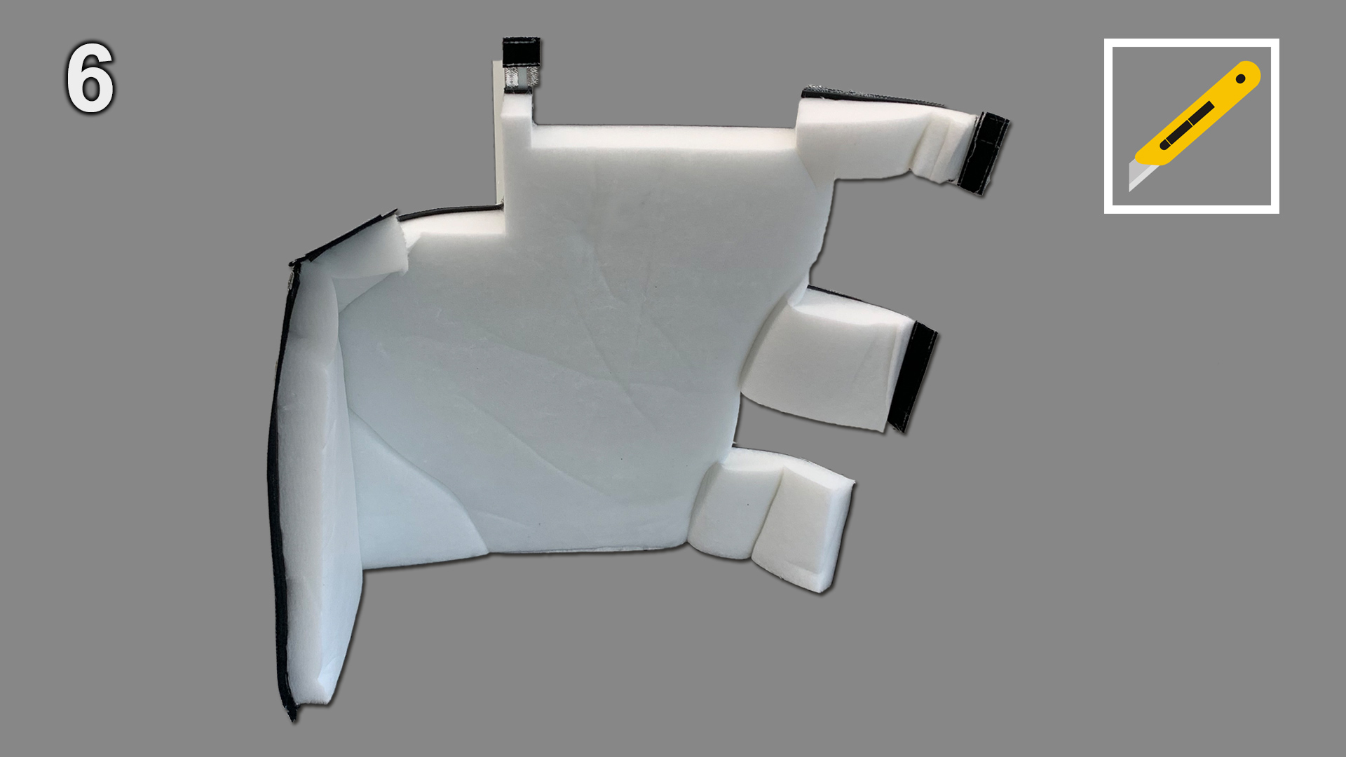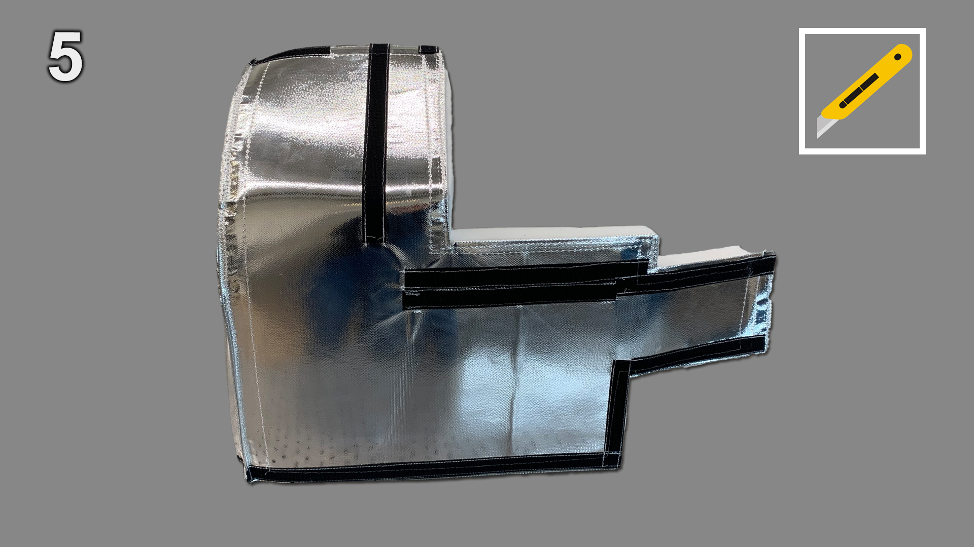 A sharp knife or scissors may be used to trim element, e. g. to guide cables through the sound insulation hood.
