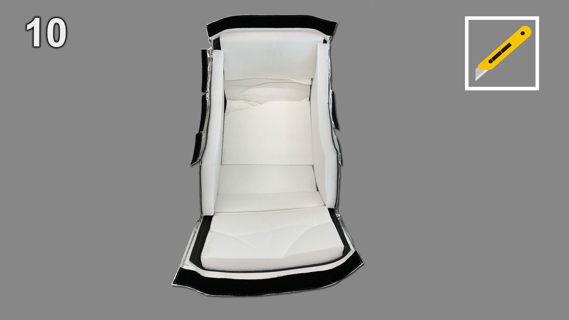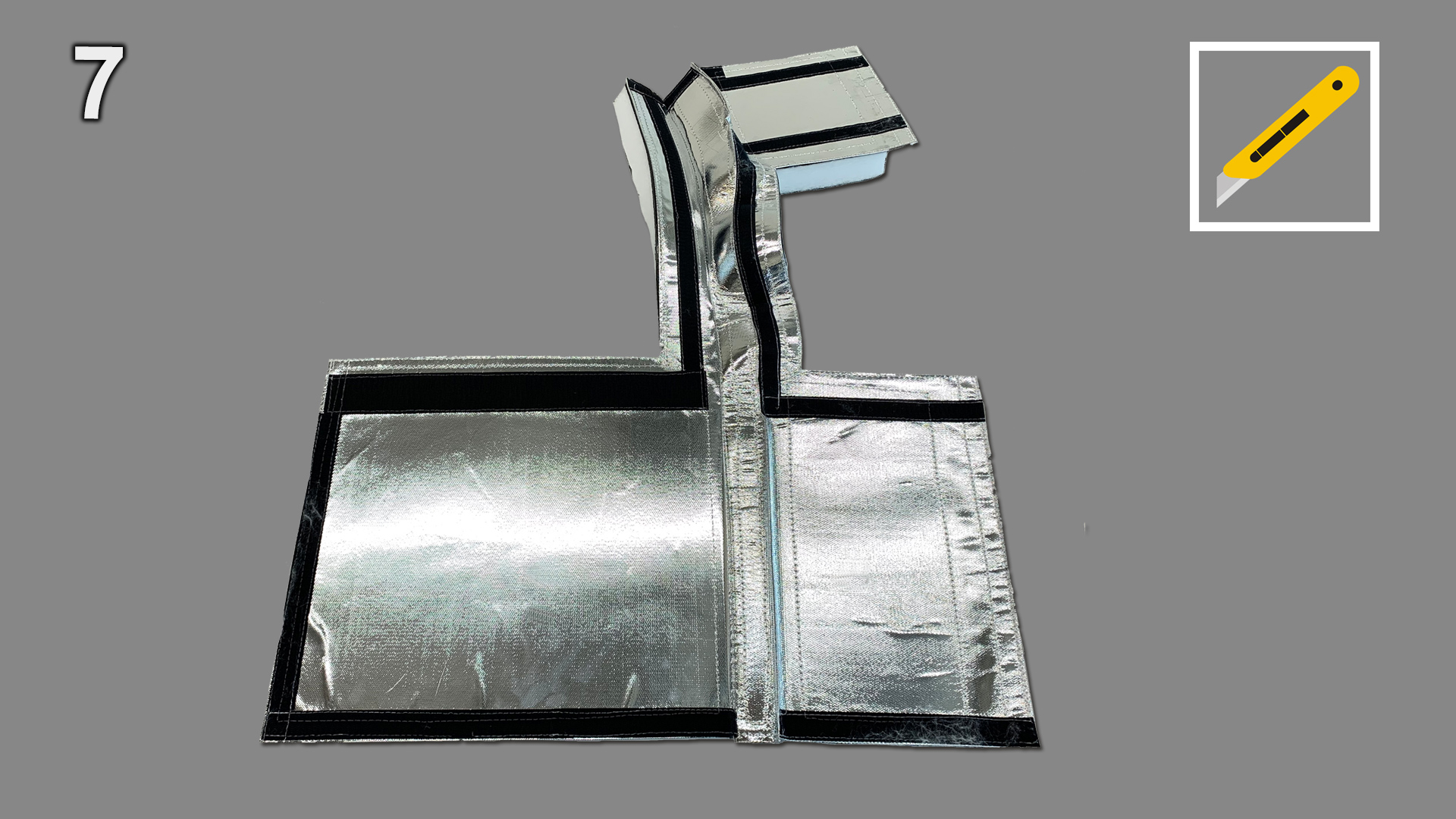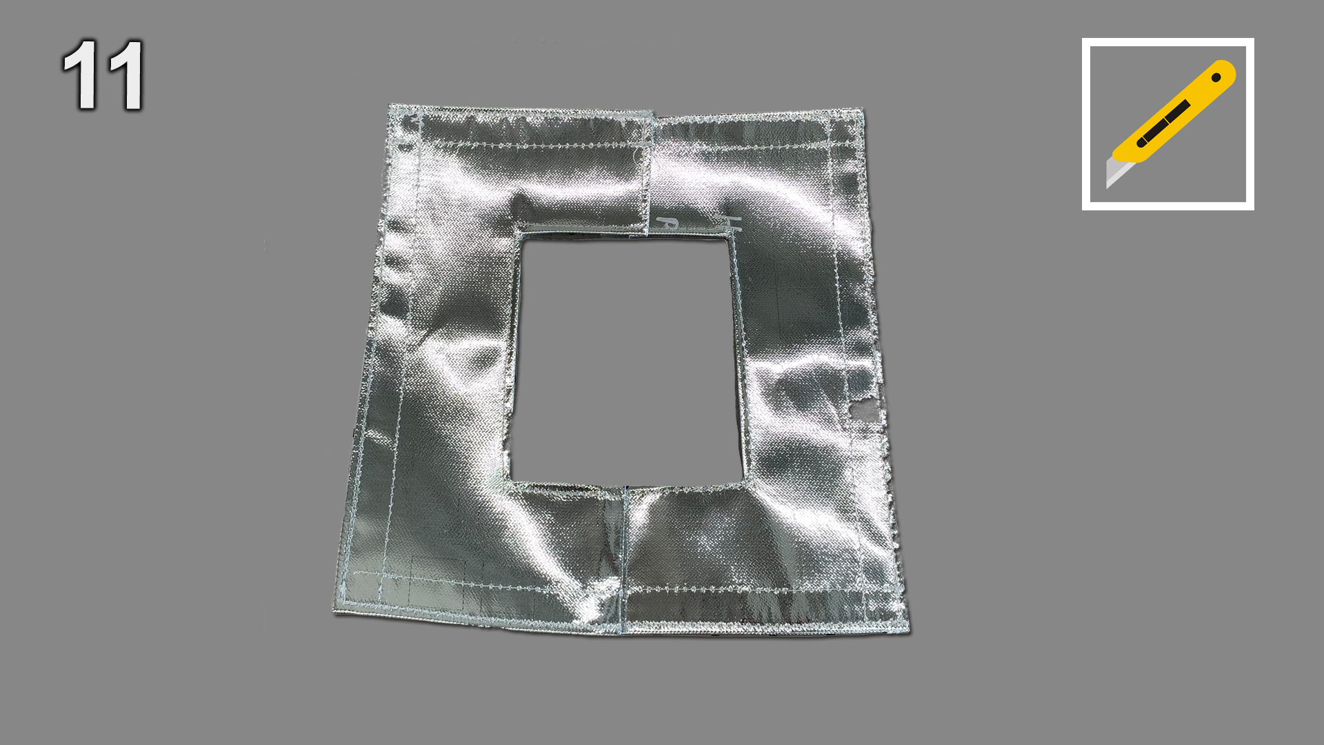 A sharp knife or scissors may be used to trim element, e. g. to guide cables through the sound insulation hood.