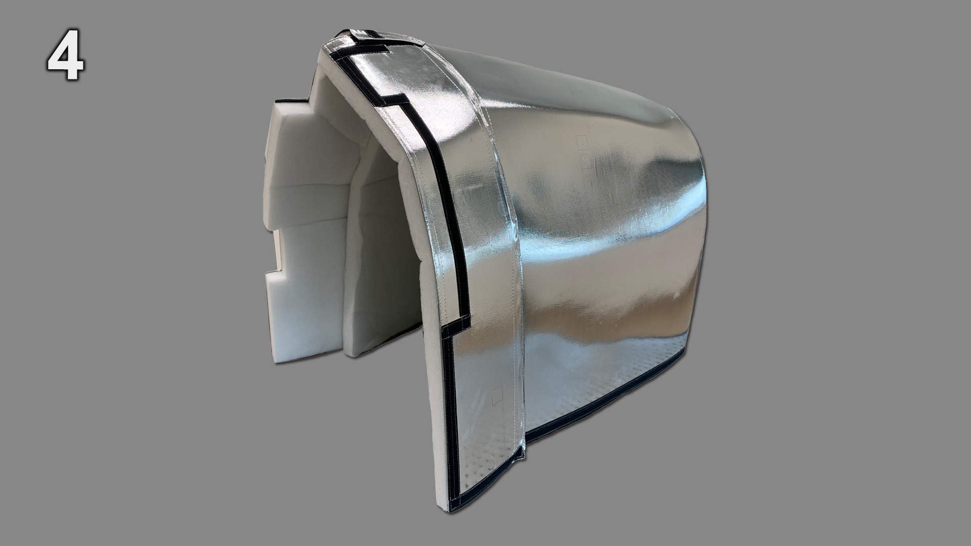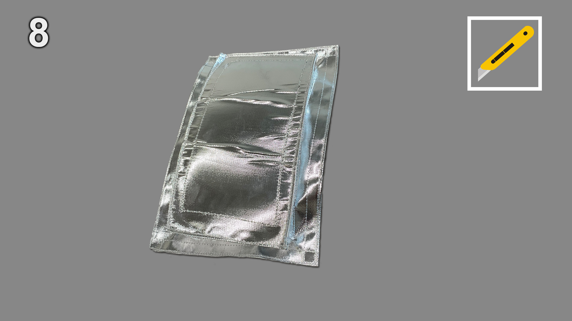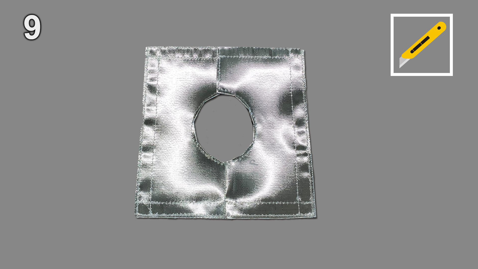 A sharp knife or scissors may be used to trim element, e. g. to guide cables through the sound insulation hood.
